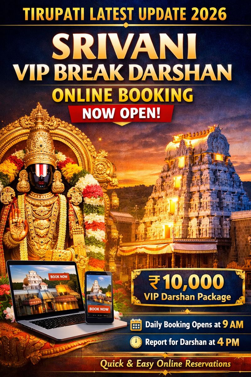 Tirupati Latest Update 2026: SRIVANI Online Current Booking for VIP Break Darshan at Tirumala