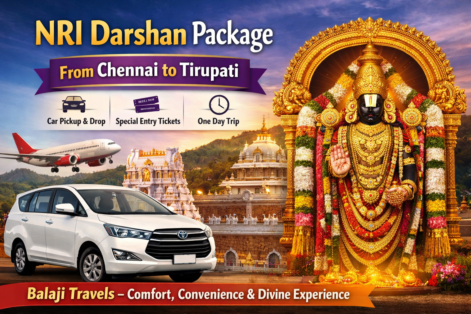 NRI Darshan from Bangalore Airport – Hassle-Free Tirupati Balaji Visit with Balaji Travels