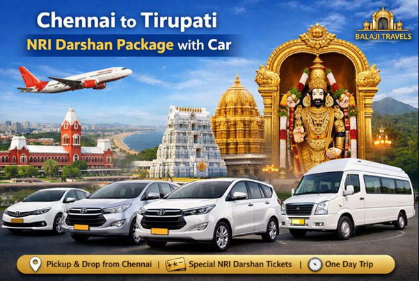 For NRI devotees seeking a smooth and spiritually fulfilling visit to Lord Venkateswara, Balaji Travels offers the Best NRI Darshan Trip Package to Tirupati Balaji Temple from Chennai. Designed with comfort, priority darshan, and personalized travel in mind, this package ensures a stress-free experience from pickup to drop.
