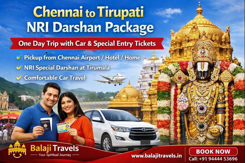 Balaji Travels assists with the full NRI Entry Darshan Tour from Chennai to Tirupati, including document guidance and temple procedures.