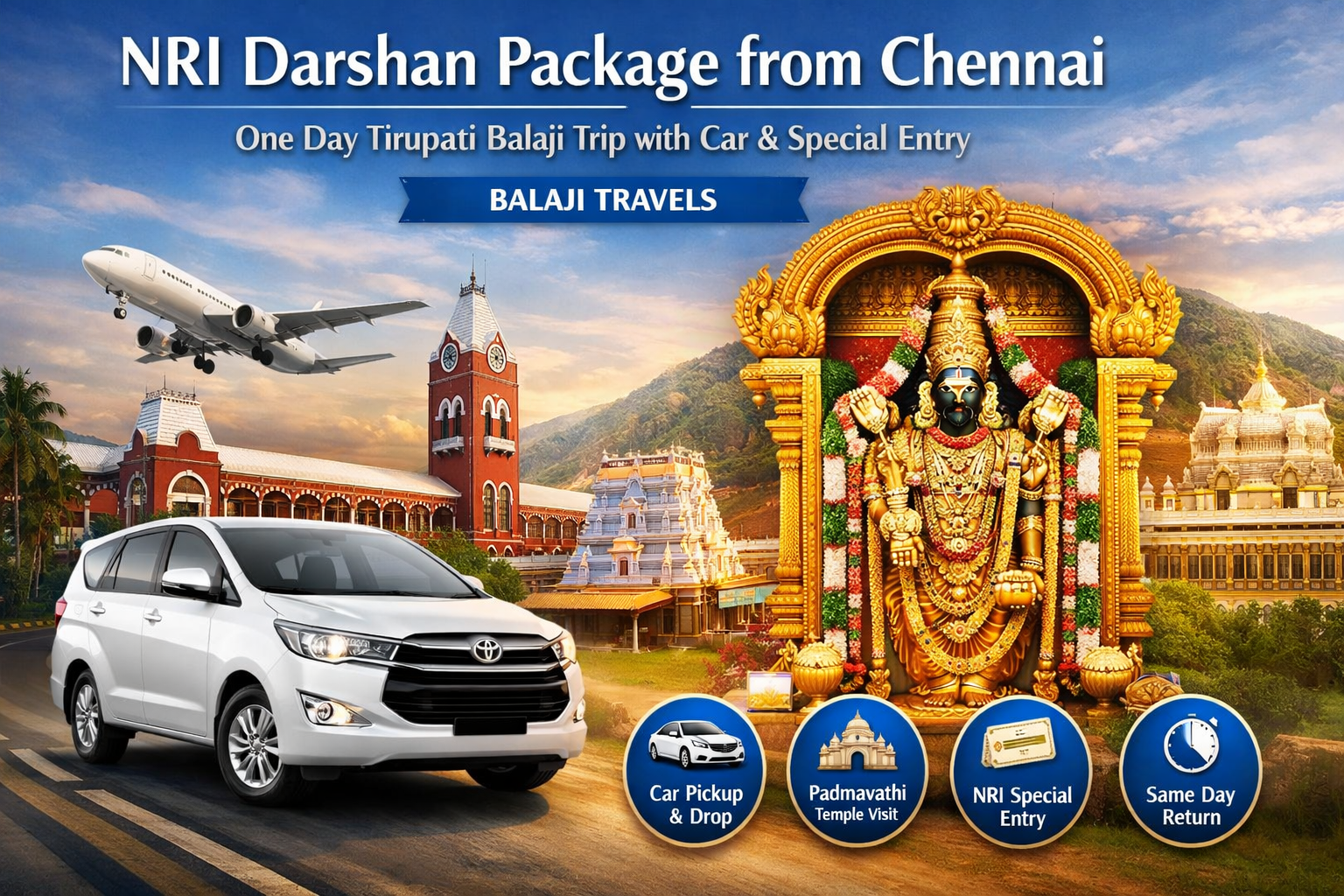 NRI Darshan Package from Chennai – One Day Tirupati Balaji Trip with Car and Special Entry