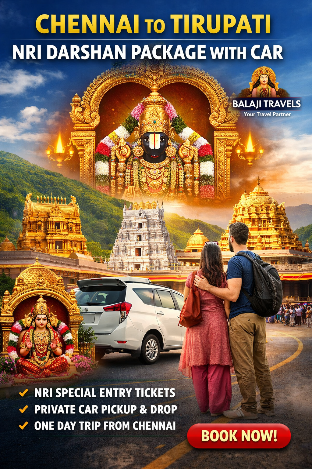 Chennai to Tirupati NRI Darshan Package with Car – One Day Divine Journey by Balaji Travels