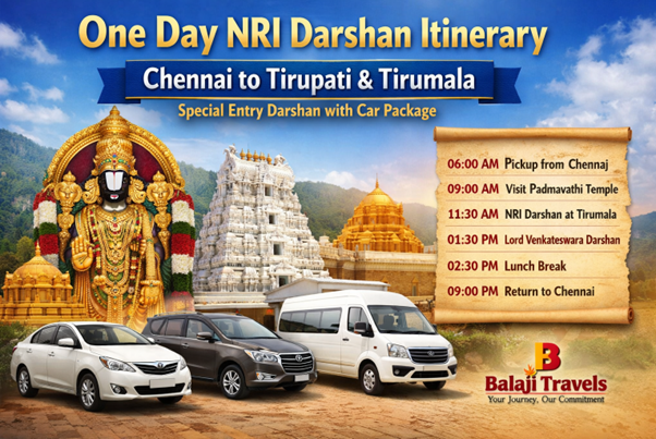 Chennai to Tirupati NRI Darshan Package with Car – A Hassle-Free Divine Journey with Balaji Travels